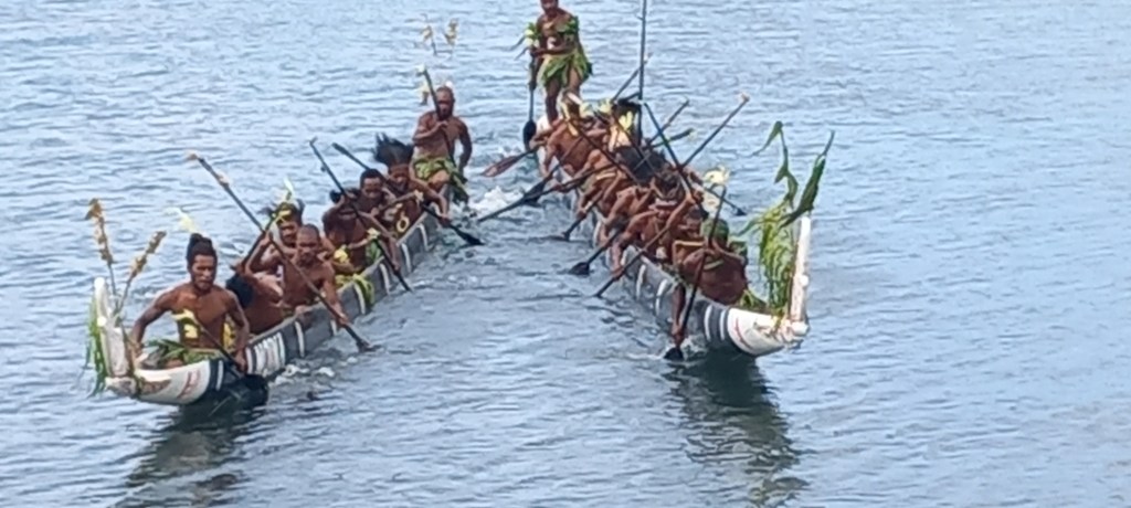 War canoes full of chanting warriors raced about the bay in front of us  (and gave a few passengers a go in the canoes!)