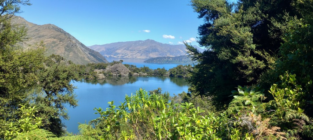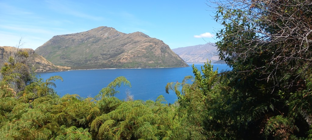 Stewart Island: Thirty kilometres south of the mainland is New Zealand’s third largest island. Again, we were thankful for calm, sunny weather for the hour’s ferry crossing of the Foveaux Strait. More than 80% of the island is National Park, whilst the tiny population of 400 residents live in and around Oban. Our travel agent (Audley Travel) excelled themselves with the Stewart Island accommodation! Just look at the views from our bedroom across the Paterson Inlet!!