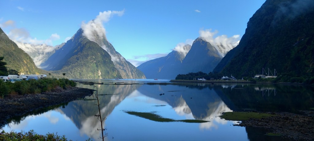 Another amazing journey, through rolling hills, wide valleys and the odd mountain pass took us further south and into Fiordland. We were based in Te Anau, a thriving little town (population 3000) on a lake of the same name. Huge choice of restaurants, cafes and shops with lots of opportunities for tours of the local fiords.