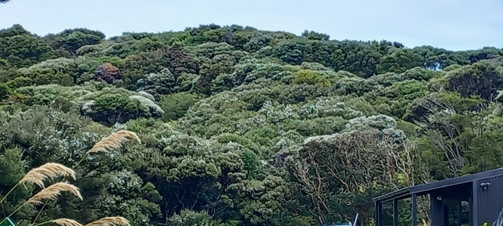 Several times, we were entertained by the island’s ONE taxi driver – Greg, is fifth generation Stewart Islander. He knows EVERYONE, where everyone lives, and the intricate history of the place. During a two-hour tour with him, we were taken to the furthest outreaches of the 28 kms of road, up and down steep, narrow drives and shown every magnificent view – helped by marvellous weather!