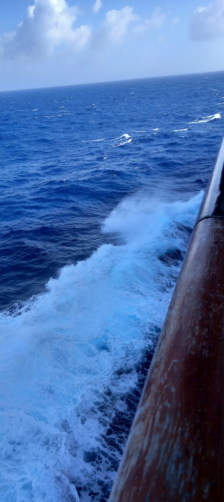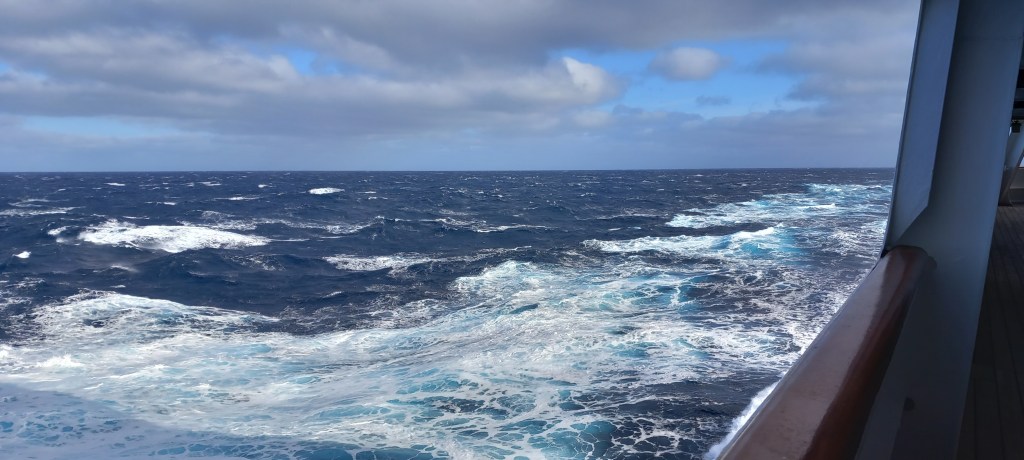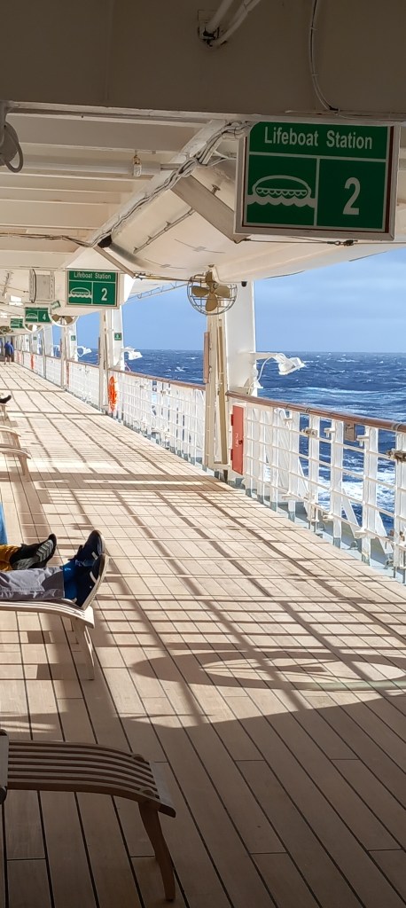 A blip on the ship: As we left Sydney, we were awoken by a ‘pipe’ at 11:10pm. All the electrics had failed – many passengers were still up and plunged into darkness in public toilets or the theatre. A while later a further ‘pipe’ informed us that the anchor had been dropped, as the ship had ‘lost propulsion’. We were just outside the Sydney Harbour entrance. I spent most of that night, sitting on the balcony in the balmy air, unable to think of anything else but ‘what would happen if we were in the middle of the Pacific and the ship had this sort of failure?’ Needless to say, “sailor-boy” husband slept through the lot! We have never been told what the problem was (lots of surmising that it was a rather large fuse that blew!) , but the four hour delay meant we were late into our next port. Well, we’ve got used to that!