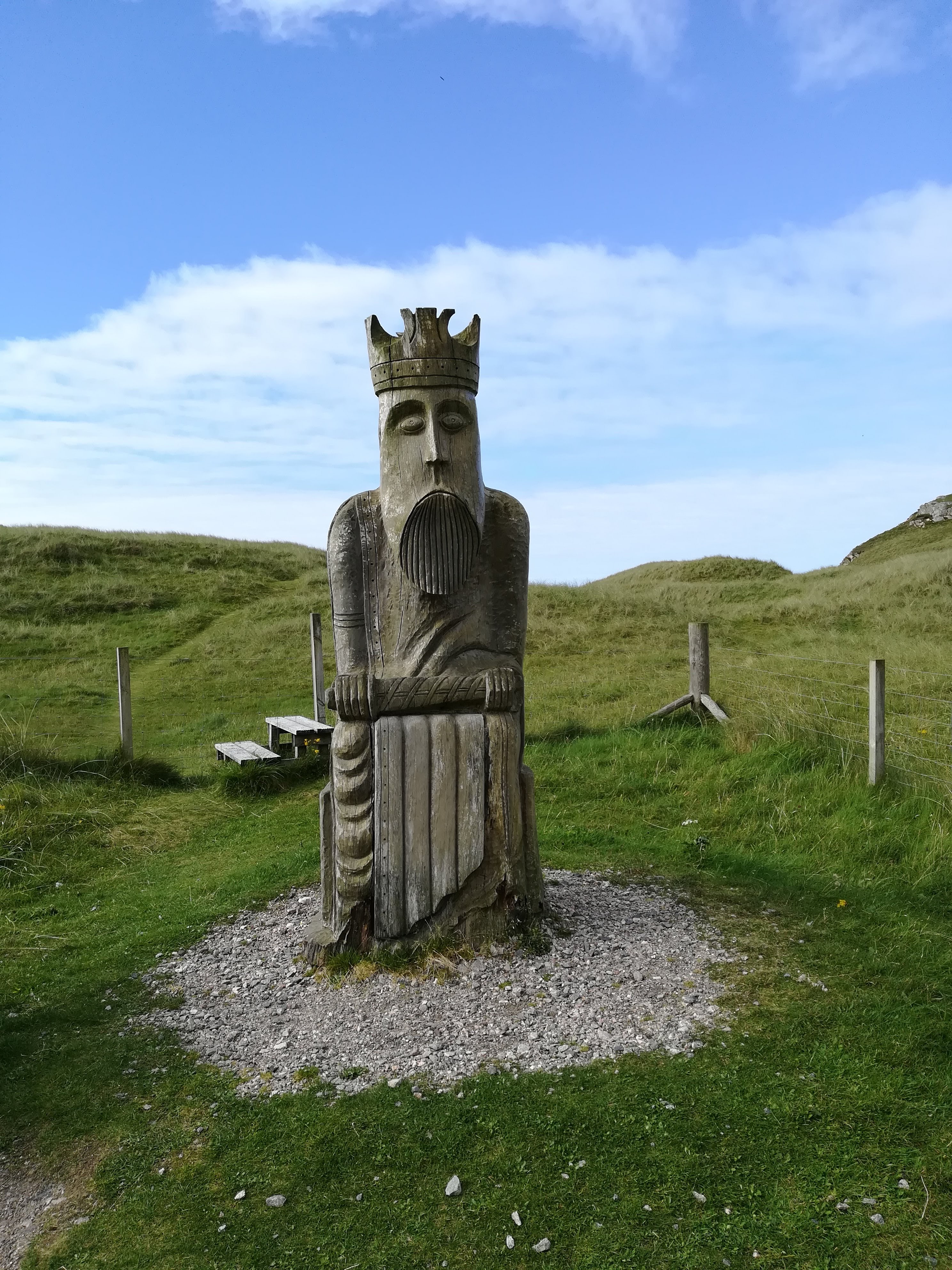 Uig Sands are popular, not least because the Lewis Chessmen are said to have been found here in 1831 amongst the sand dunes. A large wooden statue of the ‘King’ ensures we don’t forget this!