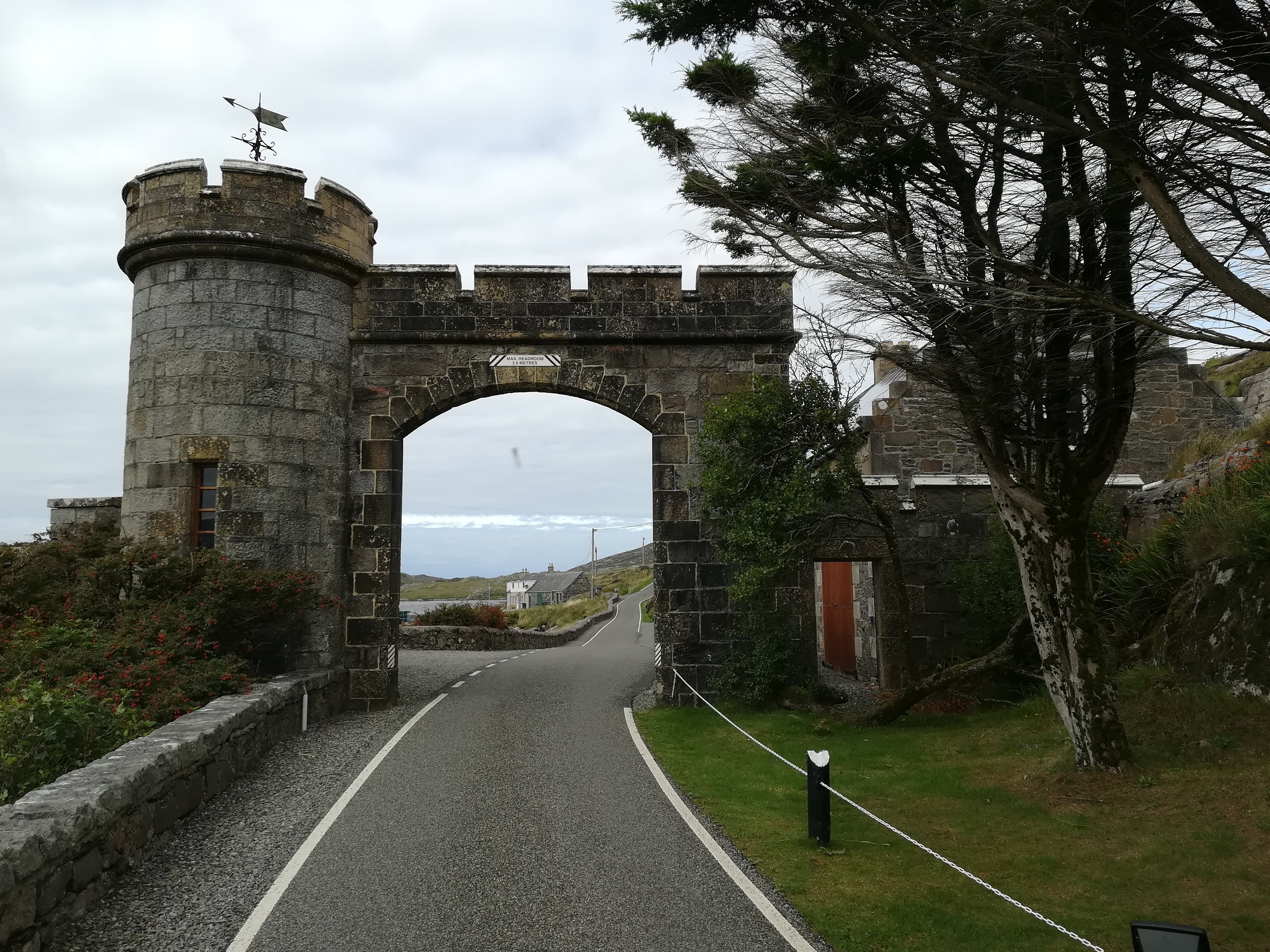 The narrow track to Huisines takes you right past the front door of this castle, built in 1868 by the Earl of Dunmore – we are thankful that the present owners are happy for the road to pass so close to the castle, and through their gardens. Perhaps it is so remote, that the passing of cars (and motorhomes!) reminds them that there is a world out there!