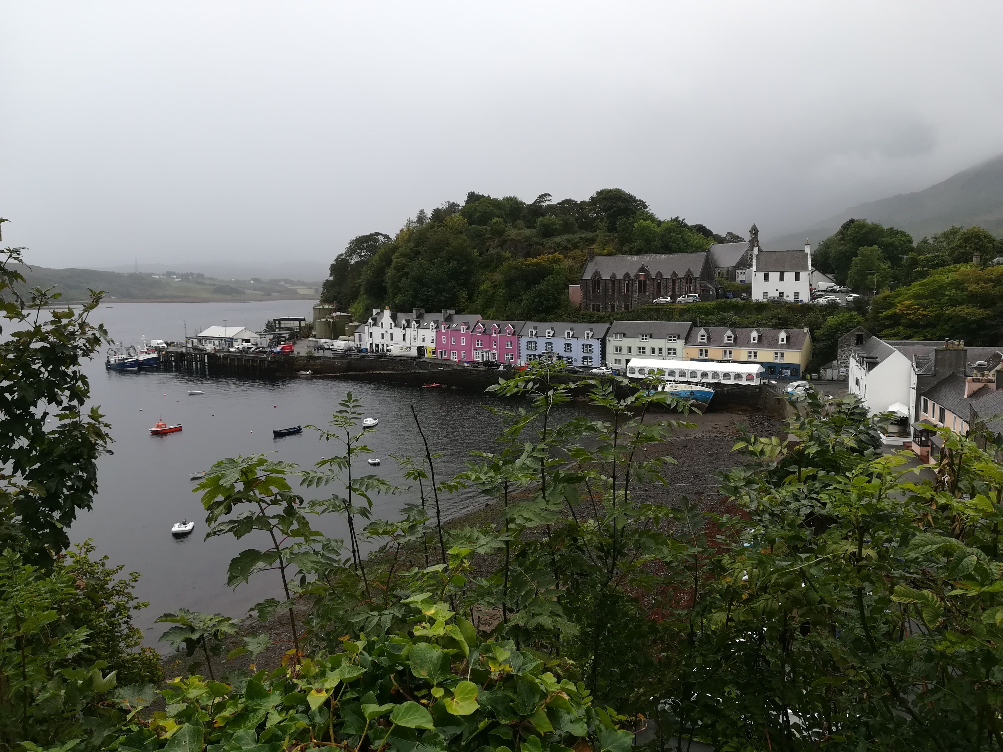 Portree is a pretty seaside town (we missed Charles and Camilla’s visit by a day!) and we enjoyed wasting a few hours in the rain (yes, more rain!) looking in the various shops (Harris Tweed anyone?) as well as replenishing Molly’s food supplies.