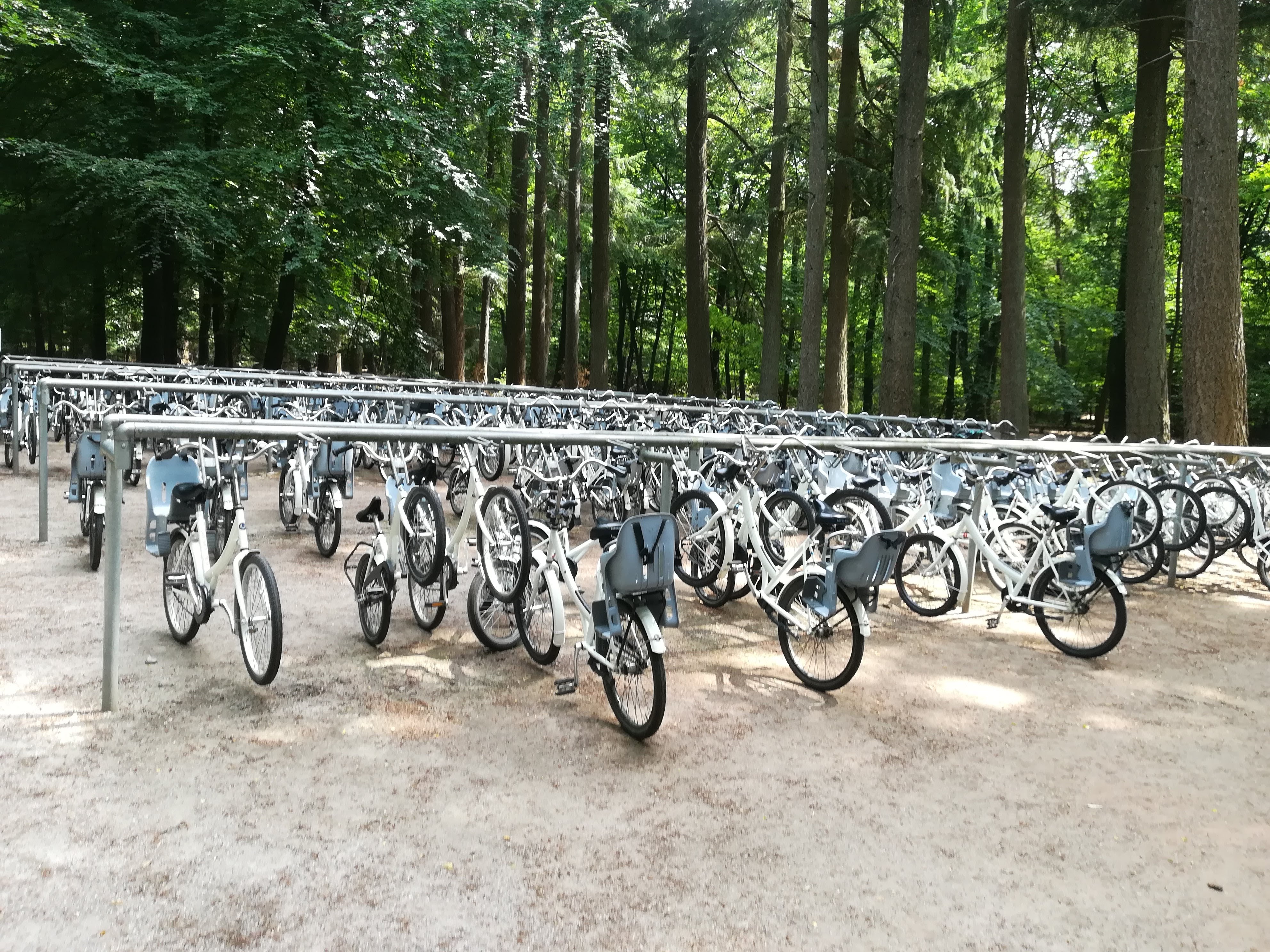 One of the white bike stations in the parkCyclepaths everywhere!