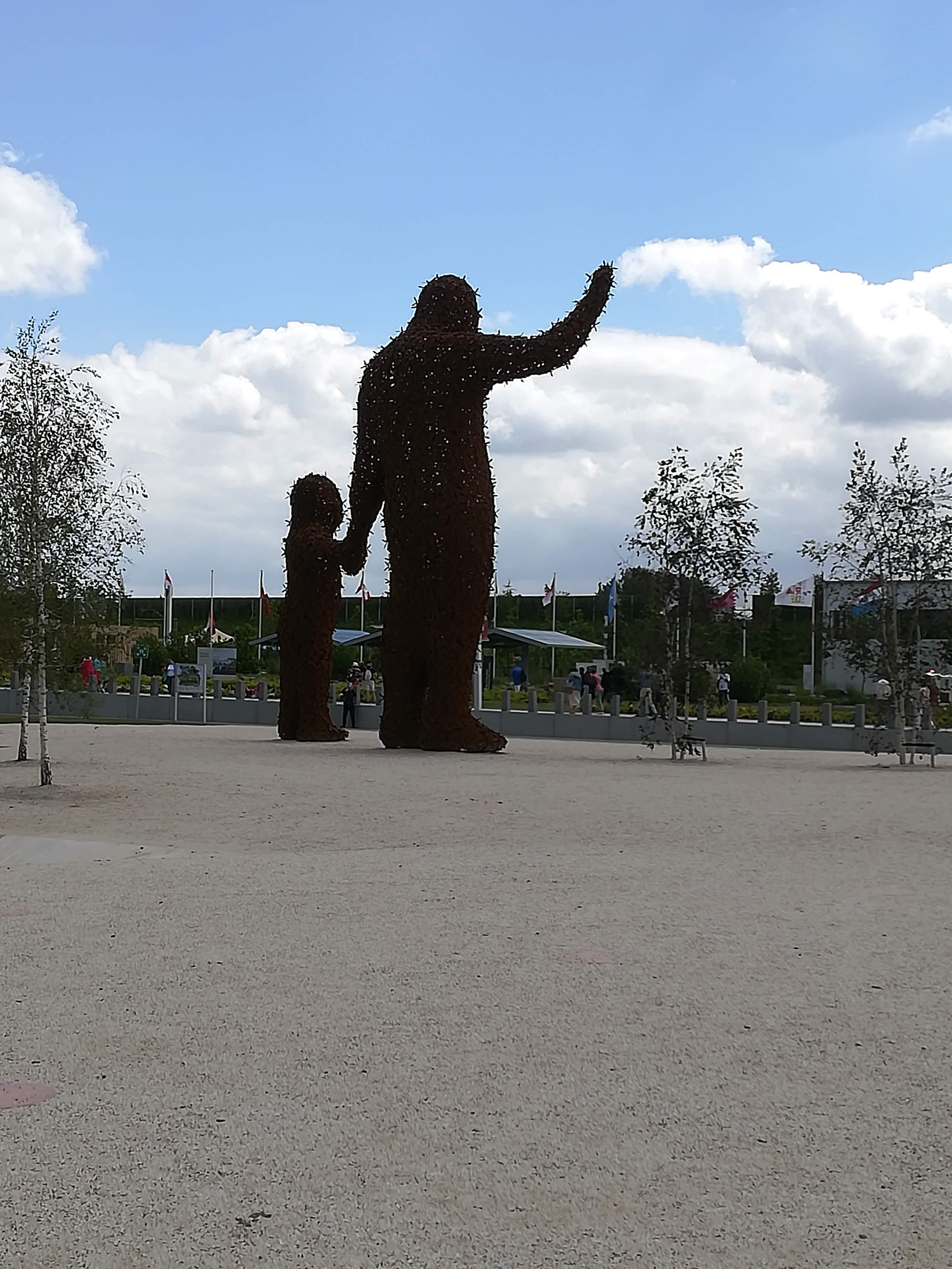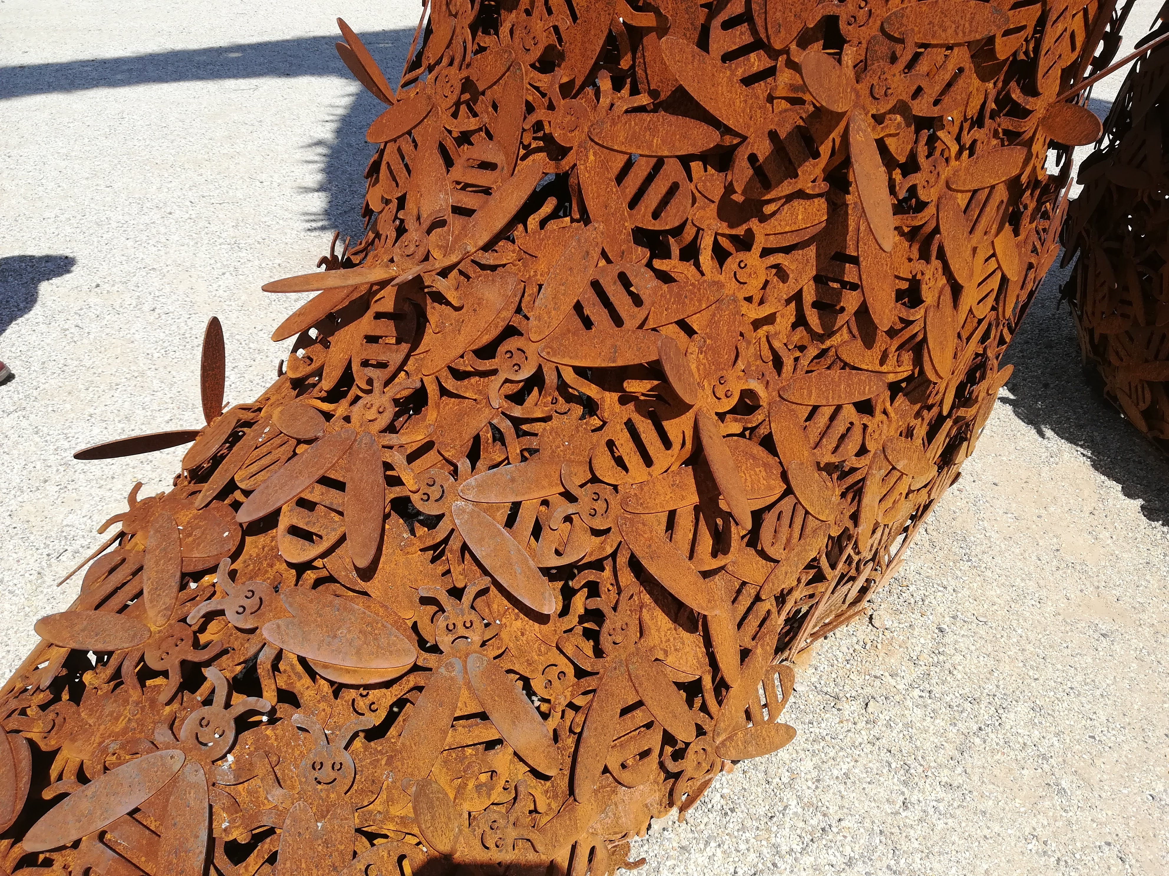 ‘Beehold’ – 12 metres high – symbolises relationship between bees and humanityCloseup of man’s leg – the whole structure is constructed of small metal beesWildflower gardens everywhereAbundant greenhouse flowers