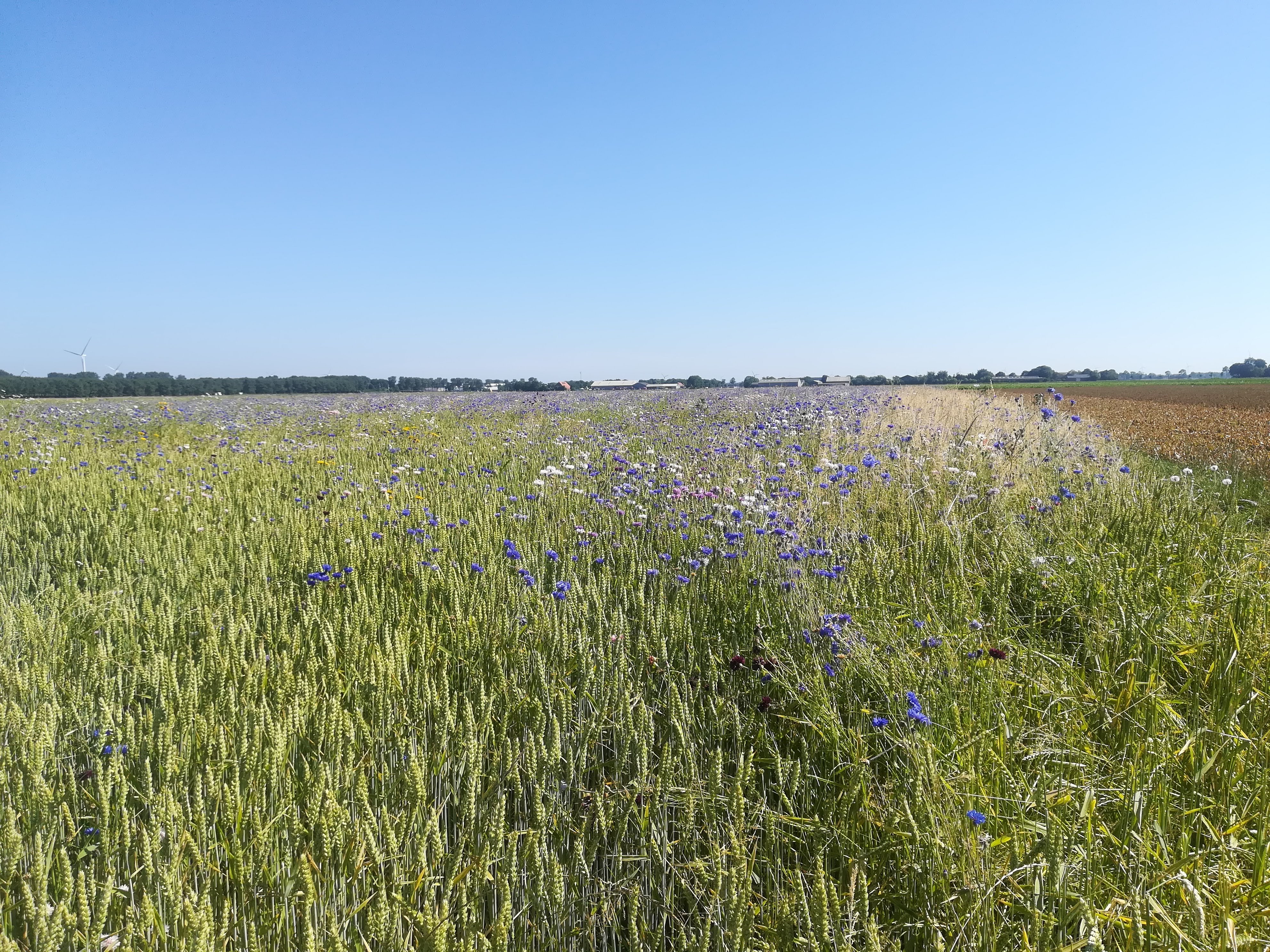 In tune with the forward thinking of the Dutch, the field in front of Molly was all about Biodiversity. Planted specifically to encourage birds and insects, the wheat will not be harvested but just left to bloom, drop seed and dry out – and then be ploughed back into the soil. Cornflowers, poppies and cow parsley enhanced the wheat ears – just beautiful.