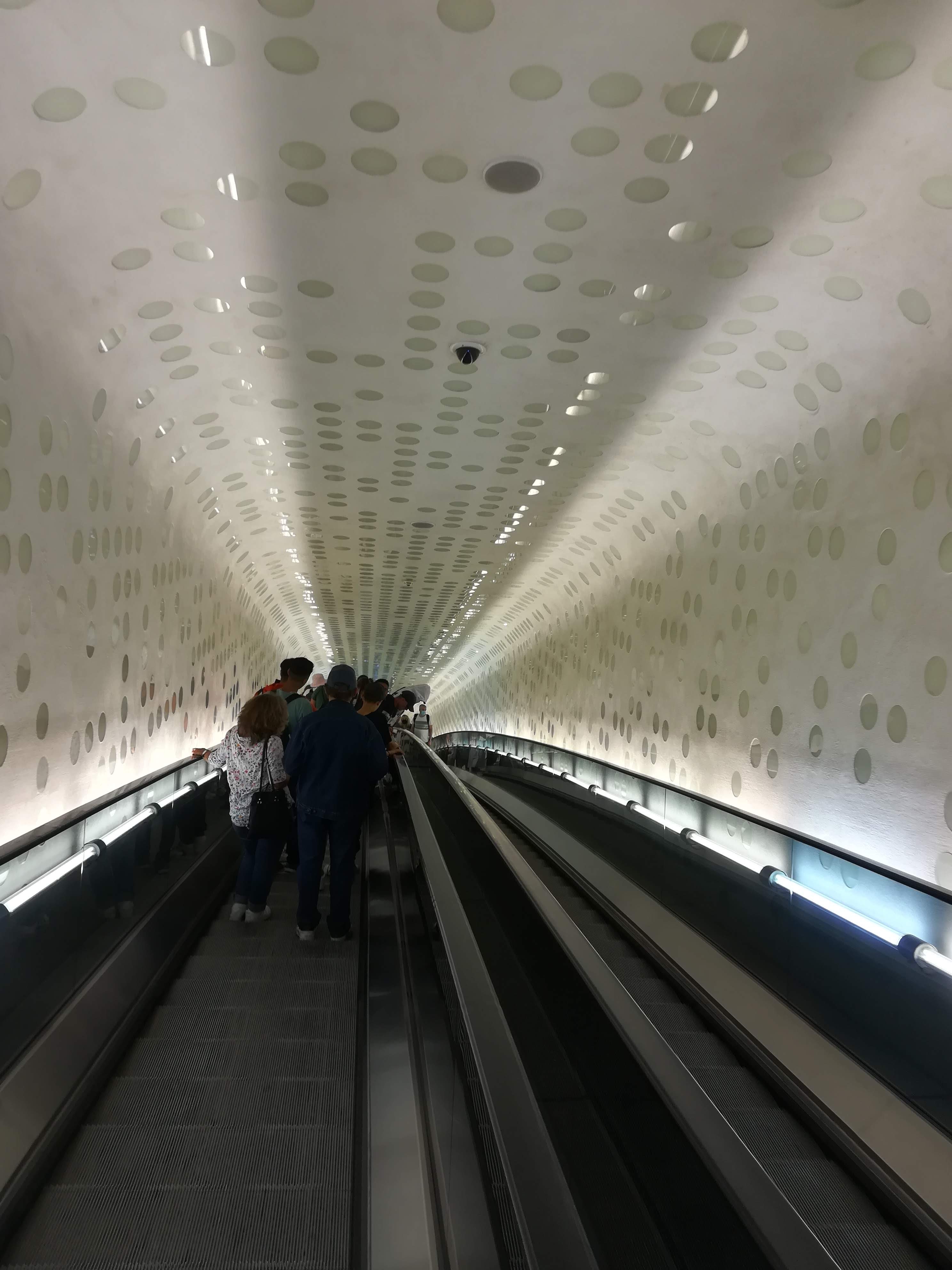 Elbe Philharmonic Concert Hall – built on top of a warehouseArched escalator at the Philharmonic hall