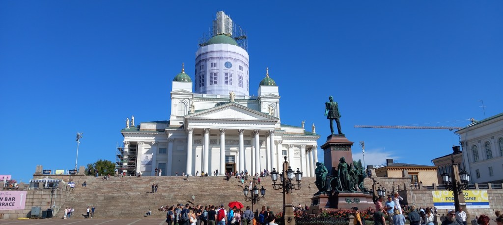 Helsinki boasts a good variety of churches. The Cathedral dominates the central square – built in 1852 its architecture is very much in the simple Lutheran style. The outside is being cleaned this summer, so visitors are greeted with the sound of high-pressure machines.